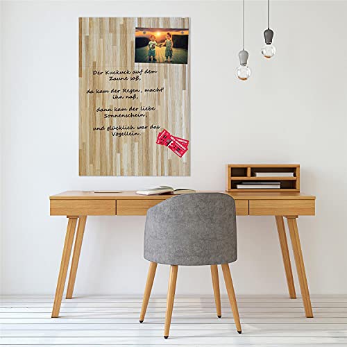 Lavagna magnetica in vetro, 70 x 100 cm, scrivibile, magnetica, bacheca da cucina, ufficio, con accessori, agenda settimanale, lavabile, effetto legno, beige
