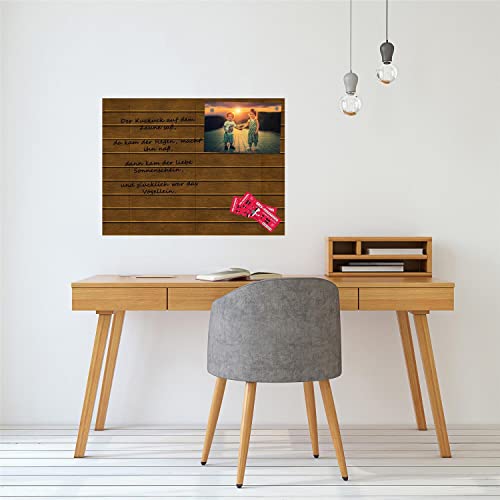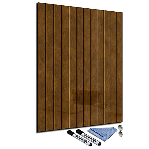 Lavagna magnetica in vetro, 60 x 90 cm, scrivibile, magnetica, bacheca da cucina, ufficio, con accessori, agenda settimanale, lavabile, effetto legno, marrone