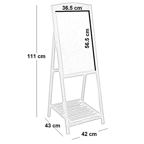 Il cavalletto in legno sostiene la lavagnetta e la mensola che funge da espositore