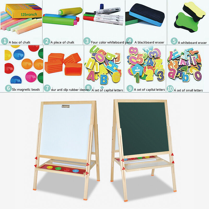Dettagli del prodotto: Peso: 6 kg Materiale: legno Altezza di sollevamento: 80 cm-148 cm Area con cornice: 57*55 cm Cornice: 3,3 cm Caratteristiche: 1. Il legno massello è sicuro ed ecologico, rettifica manuale a 360 gradi, smussi arrotondati, liscio senza sbavature, vassoi multifunzionali e una varietà di stili per soddisfare le diverse esigenze. 2. Disposizione a prova di umidità di alta qualità, strati di lavoro di precisione senza rigonfiamenti, bulloni di sollevamento rotondi, sicuri e facili da afferrare senza ferire le mani, copertura del piedino antiscivolo sotto, ispessita, antiscivolo e stabile. 3. In base al rapporto di altezza del bambino nelle diverse fasi, l'altezza del tavolo da disegno è progettata scientificamente e può essere sollevata e abbassata liberamente per soddisfare le esigenze di diverse fasce d'età. 4. Pino sylvestris russo di alta qualità selezionato, legno massello verde ed ecologico, sicuro, nessun odore particolare, consistenza chiara e resistente. 5.