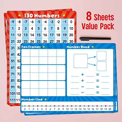 Rendere interessante la matematica: Viene fornito con 8 confezioni di lavagne a linea numerica, una quantità sufficiente per soddisfare le varie esigenze. Ogni lavagna misura circa 30.5cm x 23cm, spazio sufficiente per scrivere per tutti i tipi di scopi educativi o di gioco. La lavagna numerica è un modo divertente e memorabile per insegnare agli studenti le operazioni aritmetiche. Uno strumento di apprendimento ideale per gli studenti per praticare le abilità matematiche di base.