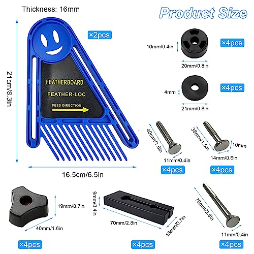 Set di Lavagne con Piume Multiuso, Blu Feather Boards per Recinzioni, Accessori per Utensili Elettrici per Legno, per Lavori di Legno, Doppia Piuma, per Seghe da Tavola a Nastro (Plastica)