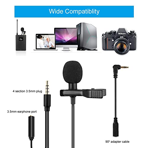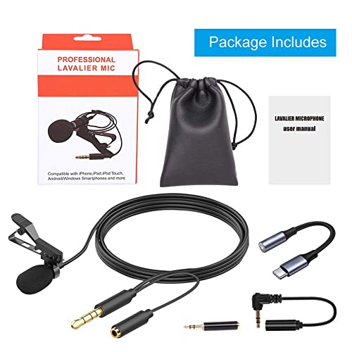 3.5mm Lavaier Microfono, Microfono Condensatore Omnidirezionale, Mini Microfono Clip con 2 Adattatore e Adattatore Tipo-c, per Android, iPhone, PC, per Registrazione di Interviste, Conferenza Video