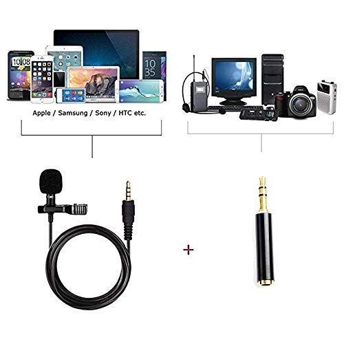 Mini Lavalier Microfono Clip a Condensatore Omnidirezionale 3.5mm con 2 Adattatore per Smartphone/PC per Registrazione di Interviste/Conferenza Video/Podcast/Voice Dictation/Phone - Nero