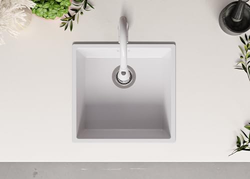 Lavandino Cucina 46x47 cm, Lavello Composito 1 vasca + Sifone Automatico, Lavabo Cucina ad incasso London 50 Slim di Primagran, Bianca