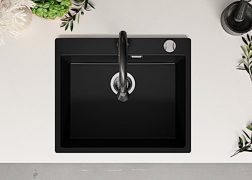 ✅ ELEGANTE, lavello di alta qualità con 1 vasca XL, senza gocciolatoio, si abbina perfettamente a mobili da 60 cm di altezza, dimensioni esterne 590 x 500 mm, profondità della vasca XL principale 180 mm