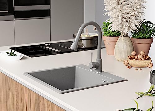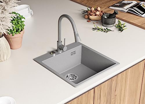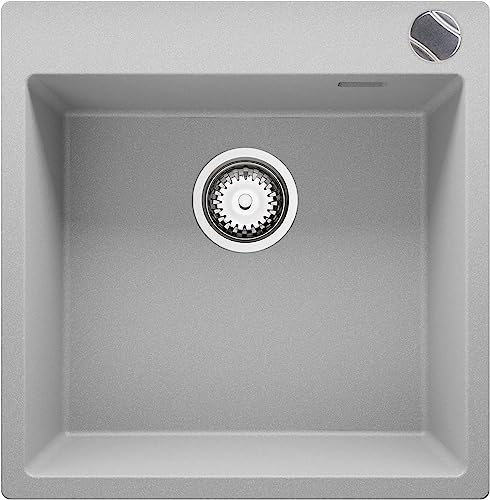 Lavandino Cucina 49 x 50 cm, Lavello Composito 1 vasca + Sifone Automatico, Lavabo Cucina Incasso Oslo 50 XXL di Primagran, Grigio