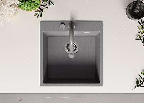 ✅ ELEGANTE, lavello di alta qualità con 1 vasca XL, senza gocciolatoio, si abbina perfettamente a mobili da 50 cm di altezza, dimensioni esterne 490 x 500 mm, profondità della vasca XL principale 180 mm