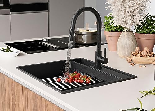 ✅ INCLUSO: lavello selezionato, Scolapiatti avvolgibile, sifone telescopico verticale automatico di alta qualità (pomello nel lavello) che consente di risparmiare spazio con scarico con tappo filtro e troppopieno, collegamento alla lavatrice o alla lavastoviglie, Istruzioni di installazione e lima per il taglio del foro