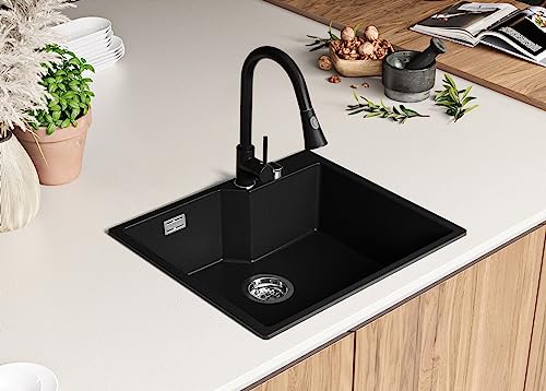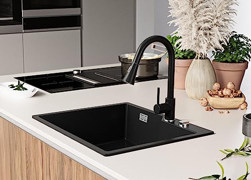 ✅ ELEGANTE, lavello di alta qualità con 1 vasca XL, senza gocciolatoio, si abbina perfettamente a mobili da 60 cm di altezza, dimensioni esterne 590 x 500 mm, profondità della vasca XL principale 180 mm