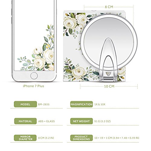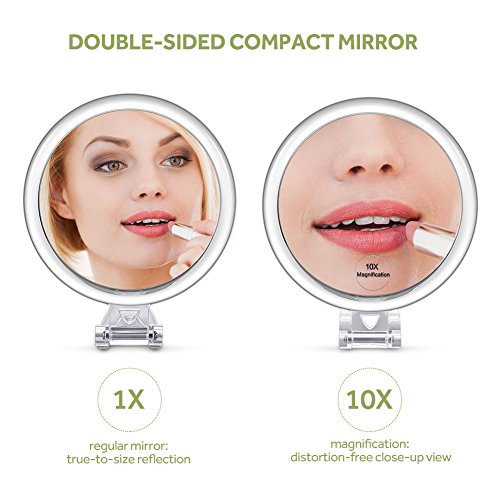 SPECCHIO A DUE LATI: Il lato dello specchio con ingrandimento 10x rivela anche i dettagli più piccoli del viso con perfetta nitidezza ed è ottimo per ritoccare il trucco, le sopracciglia e le imperfezioni;