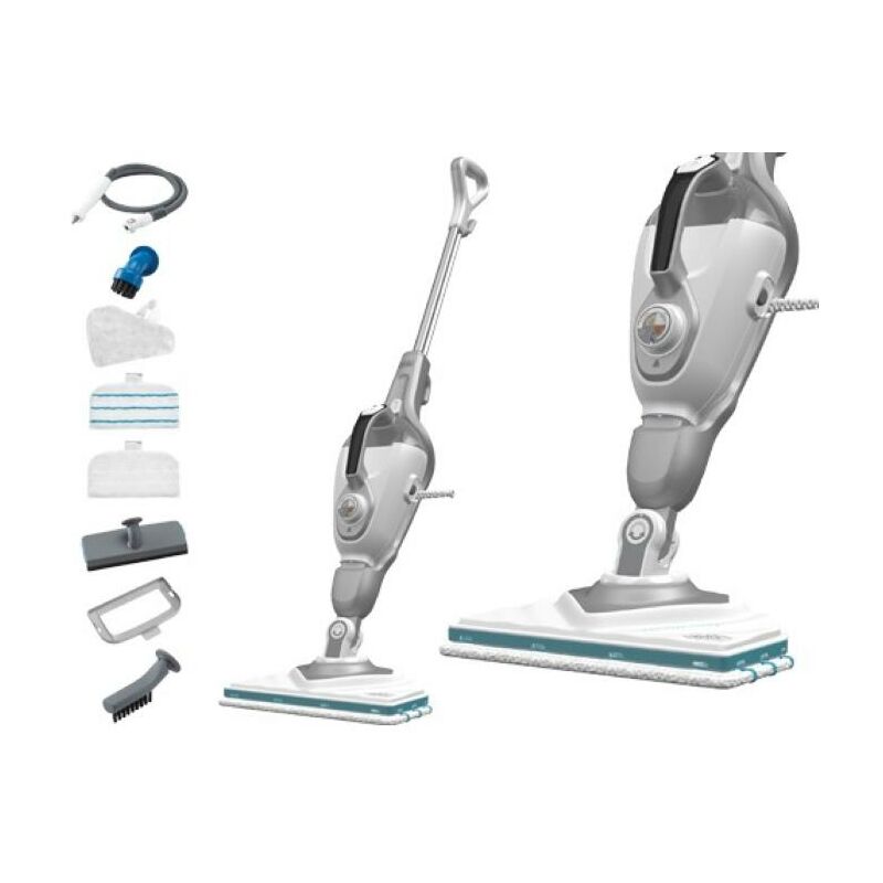 Potenza 1600 Watt, elimina il 99.9% di germi e batteri, utilizzo con acqua del rubinetto, regolazione vapore manuale, riscaldamento 15 sec., capacita' 500 ml., testa snodabile, generatore di vapore estraibile, cavo 6 mt. In dotazione: tubo flessibile, 1 panno in microfibra per tutti i pavimenti, 1 panno per superfici delicate, 1 panno triangolare, accessorio per rinfrescare i tappeti, spazzolina per fughe, spazzolina per diverse superfici, testa lavavetri con spugna raccogligocce