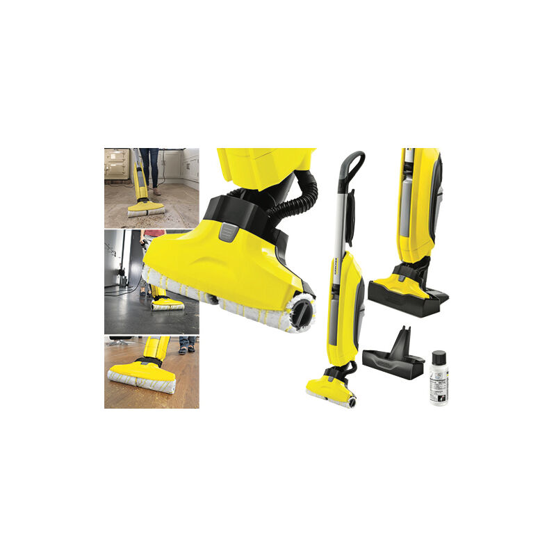 Funzione 2in1: Raccoglie lo sporco e lo aspira convogliandolo in un serbatoio, sistema a doppio serbatoio, non occorre aspirare prima di lavare il pavimento, 2 rulli rotanti 30 cm. in microfibra: i rulli vengono inumiditi con una soluzione di acqua e detergente igienizzante proveniente dal serbatoio. Potenza 460 Watt, velocit? rulli 500 rpm, serbatoio acqua pulita 400 ml., serbatoio acqua sporca 200 ml. In dotazione detergente universale 30 ml, stazione di appoggio e lavaggio rulli. Dimensioni 32x27xH122 cm.