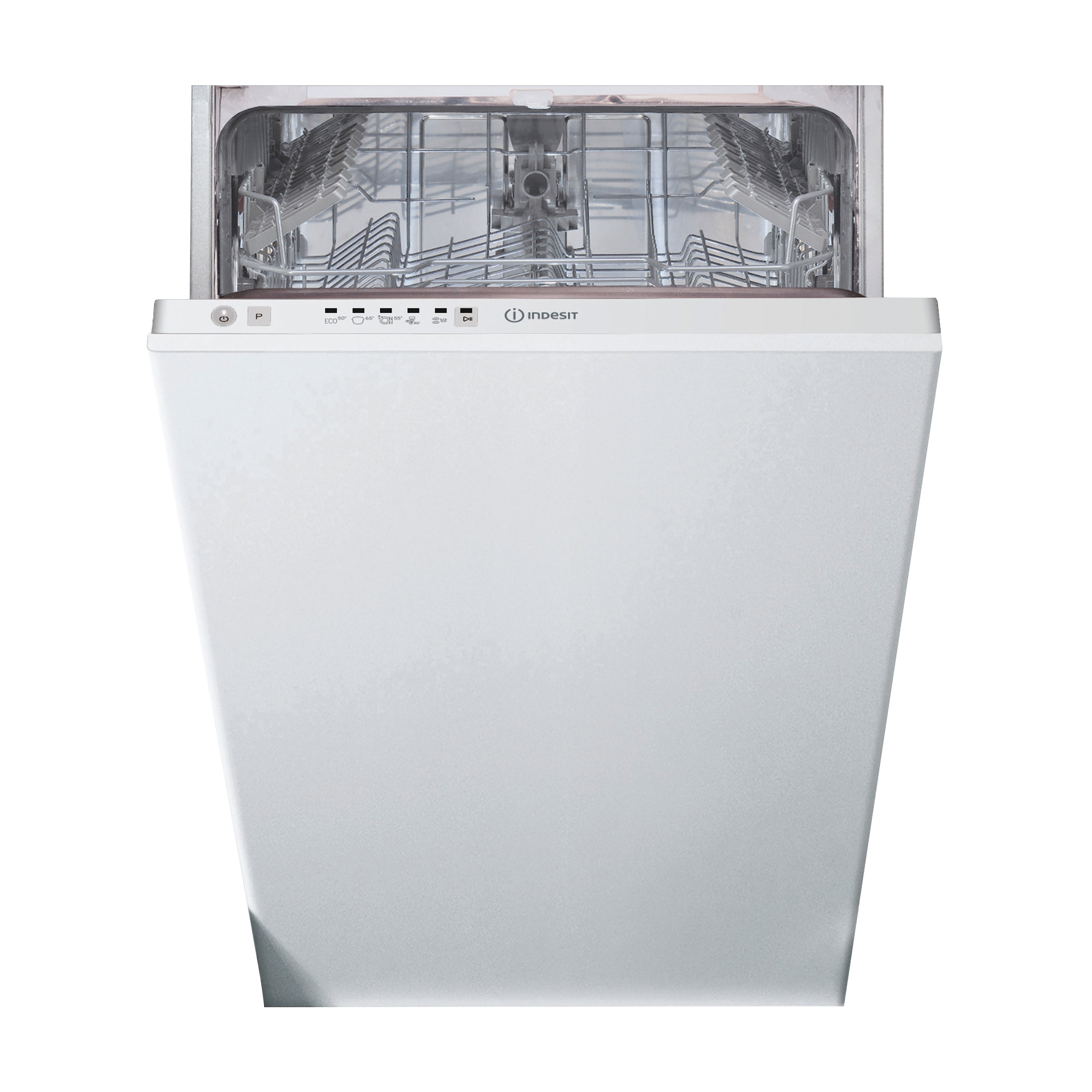 Lavastoviglie 45 cm, A+, 10 coperti, 5 programmi: Eco, Intensivo 65°C, Rapido, Auto Normale, Mezzo Carico. Cesti Lift-up +3,5 cm in altezza. Carico acqua calda fino a 60°C. Filtro autopulente, vasca interamente in acciaio, decalcificazione a regolazione elettronica, sistema antiallagamento Over flow.