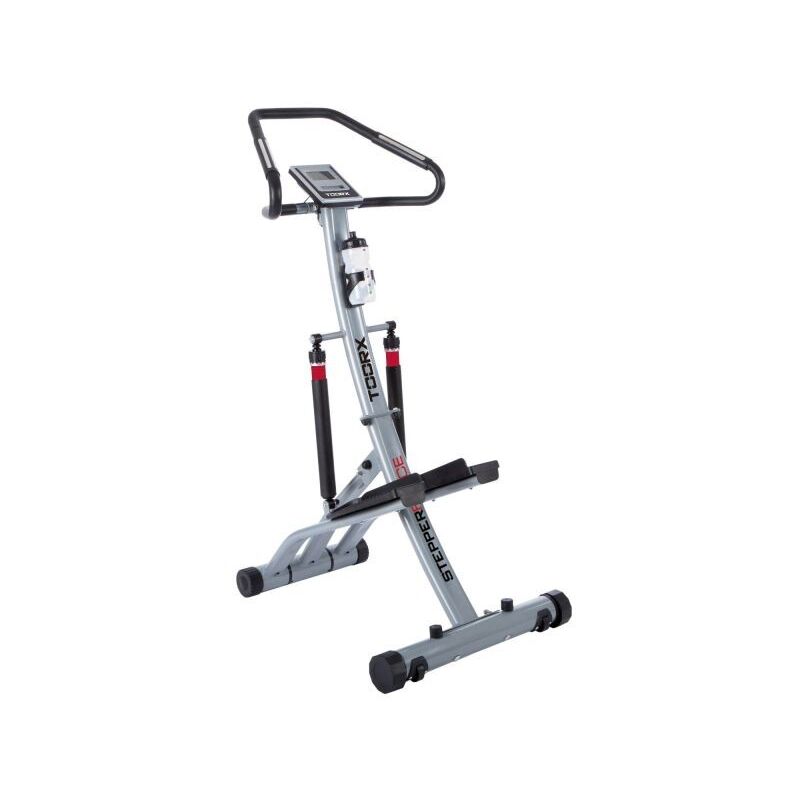 Stepper Force è uno stepper per l'esercizio domestico pratico e funzionale, ottimo per svolgere esercizi cardio e bruciare velocemente grassi. Solido e robusto, supporta un peso fino a 120 Kg. Grazie alle dimensioni contenute, è richiudibile e può essere sistemato in poco spazio. Lo stepper è composto da due pistoni idraulici resistenti alle sollecitazioni, inoltre il display LCD fornisce tutte le informazioni necessarie per monitorare l'efficacia dell'allenamento. La regolazione dello sforzo su 12 livelli, avviene in maniera meccanica agendo su entrambe le ghiere poste sopra i pistoni idraulici. Basta ruotare le ghiere e seguire i numeri stampati sulla circonferenza dei pistoni per applicare così il grado di resistenza desiderato. Il manubrio è ergonomico e, oltre ad offrire un valido supporto, è dotato della funzione hand pulse per monitorare i battiti cardiaci. Sul telaio centrale è installata un pratico portaborraccia (borraccia non inclusa), così da potersi dissetare senza