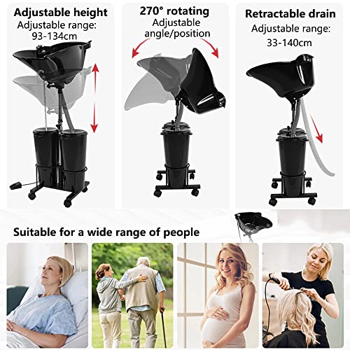 Lavatesta Mobile Portatile,Lavabo per Capelli Regolabile in Altezza,Lavabo Shampoo con Pompa Elettrica,Parrucchiere Lavabo per Capelli con 2 Secchi e Tubi di Scarico