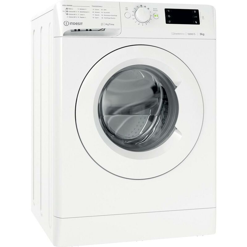 Indesit MTWE 91284 W IT. Tipo di carica: Caricamento frontale. Capacità cestello: 9 kg, Classe di efficienza della centrifuga: B, Silenziosità (centrifuga): 75 dB, Velocità di centrifuga massima: 1200 Giri/min. Colore del prodotto: Bianco. Larghezza: 595 mm, Profondità: 605 mm, Altezza: 850 mm. Classe efficienza energetica: C Design Posizionamento dell'apparecchio: Libera installazione Tipo di carica: Caricamento frontale Colore del prodotto: Bianco Display incorporato: Sì Tipo di controllo: Pulsanti, Manopola Cerniera porta: Sinistra Tecnologia Inverter: Sì Colore della porta: Bianco Materiale vasca: Plastica Volume cestello: 62 L Possibilità di incasso sottopiano: No Prestazione Capacità cestello: 9 kg Velocità di centrifuga massima: 1200 Giri/min Classe di efficienza della centrifuga: B Quantità programmi di lavaggio: 16 Classe emissione rumore: B Silenziosità (centrifuga): 75 dB Partenza differita: Sì Programmi di lavaggio: Lana Sistema di bilanciamento carico: Sì Sistema di