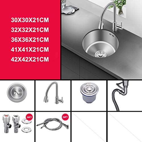 Lavelli da cucina Lavandino Rotondo del Bancone Bar Acciaio Inossidabile Lavello da Balcone Rubinetto Estraibile (Color: Silver, Size: 30cm)