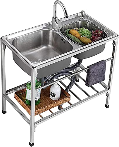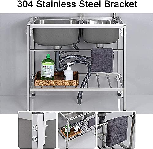 Barm Lavelli Doppi con Staffa Lavelli da Cucina Commerciali in Acciaio Inossidabile Vano Lavello Multiuso a Libera Installazione con Rubinetto Caldo e Freddo Lavello a Doppia Vasca 29 5x16in