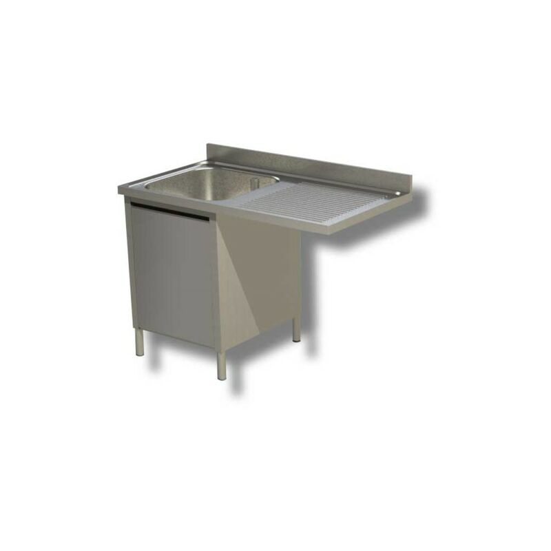 Codice RS5011 - Lavello lavatoio armadiato, modello RP-DSLALDX126, costruito in acciaio inox 430, dimensioni cm. 120x60x85 (lxpxh), n.1 vasca dim. cm. 50x40x30 (lxpxh), sgocciolatoio DX, vano lavastoviglie, antina tamburata. Vasca stampata spessore 1 mm, piano con spessore 40 mm, alzatina posteriore spessore 20 mm e altezza 100 mm. Piedini regolabili in altezza. In dotazione: piletta di scarico d. 46 mm e tubo troppo pieno.
