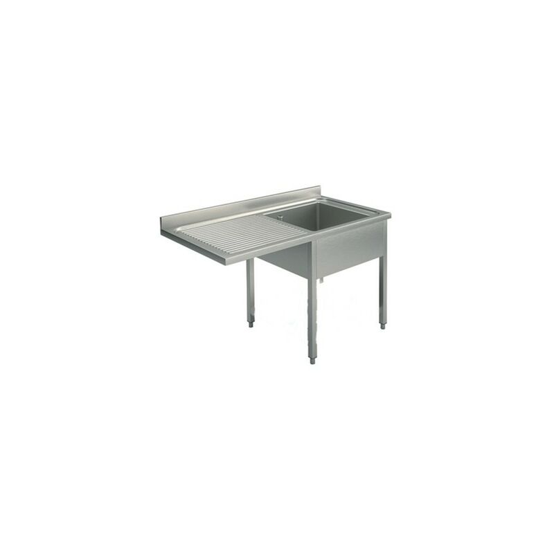 Codice RS5958 - Lavello lavatoio su gambe, modello AC-EL/LT/SR/L/120/SX, costruito in acciaio inox 18/10 AISI 304 (no 430), dimensioni cm. 120x70x85 (lxpxh), n.1 vasca dim. cm. 50x50x30 (lxpxh), sgocciolatoio SX, vano lavastoviglie larghezza cm. 60,5. Vasca stampata spessore 1 mm, piano con spessore 40 mm, alzatina posteriore spessore 20 mm e altezza 100 mm. Gambe con profilo quadrato 40x40 mm con piedini regolabili in altezza. In dotazione: piletta di scarico d. 46 mm e tubo troppo pieno.