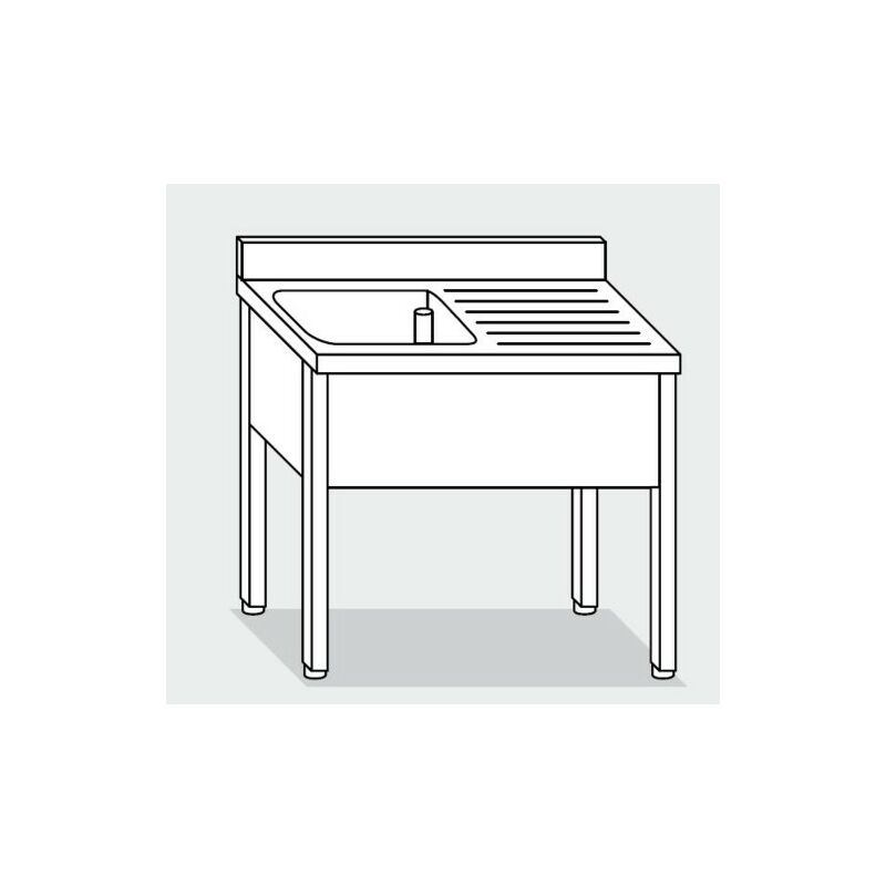 Codice RS5559 - Lavello lavatoio su gambe, modello AC-SM/LT/SR/140/1VGDX/7, costruito in acciaio inox 18/10 AISI 304 (no 430), dimensioni cm. 140x70x85 (lxpxh), n.1 vasca dim. cm. 60x50x32 (lxpxh), sgocciolatoio DX. Vasca stampata spessore 1 mm, piano con spessore 40 mm, alzatina posteriore spessore 20 mm e altezza 100 mm. Gambe con profilo quadrato 40x40 mm con piedini regolabili in altezza. Fornito in kit smontato. In dotazione: piletta di scarico d. 46 mm e tubo troppo pieno.