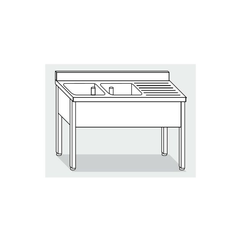 Codice RS5575 - Lavello lavatoio su gambe, modello AC-SM/LT/SR/180/2VGDX/7, costruito in acciaio inox 18/10 AISI 304 (no 430), dimensioni cm. 180x70x85 (lxpxh), n.2 vasche dim. cm. 50x50x30 (lxpxh), sgocciolatoio DX. Vasca stampata spessore 1 mm, piano con spessore 40 mm, alzatina posteriore spessore 20 mm e altezza 100 mm. Gambe con profilo quadrato 40x40 mm con piedini regolabili in altezza. Fornito in kit smontato. In dotazione: piletta di scarico d. 46 mm e tubo troppo pieno.