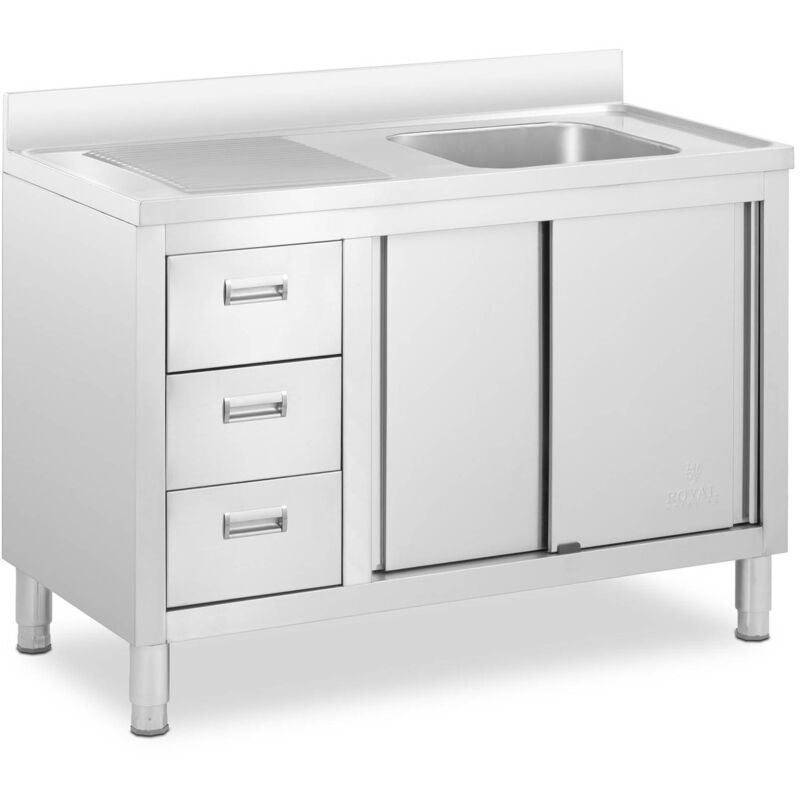 Lavello cucina in acciaio inox con vasca particolarmente profonda, armadietto sottostante e alzatina paraschizzi di marca Royal Catering ✅ Modello: RC-IKS08 ✅ Articolo: 10012141 ⬇️ Caratteristiche principali Efficiente: lavello armadiato con ante scorrevoli per un maggior spazio in cui riporre gli utensili, anche in ambienti ristretti . Durevole: lavello cucina altamente robusto e particolarmente resistente alla ruggine grazie alla fabbricazione in acciaio inox. Flessibile: piedini regolabili in altezza (20 mm) per un appoggio più sicuro. Maggiore pulizia sul posto di lavoro: alzatina posteriore (100 mm) che protegge la parete dagli schizzi. Accessori: materiale necessario per il montaggio incluso nella spedizione. ⬇️ Dettagli tecnici Materiale Acciaio inox Colore Argento Numero di lavelli 1 Misure della ciotola [mm] 400 x 400 x 300 Manuale Sì Con gambe Sì Con armadietto Sì ⬇️ Descrizione del prodotto Il lavello armadiato RC-IKS08 di Royal Catering è la soluzione ideale per