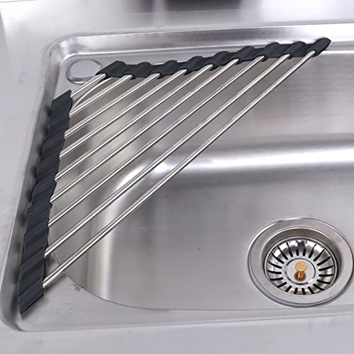 HBBY Lavello Caddy Triangle Dish Drying Rack for Sink Corner Roll Up Dish Drying Rack Pieghevole Acciaio Inox Multipurpose Over The Sink Corner Dish Drainer Tappetino per scaffale angolare per cucina