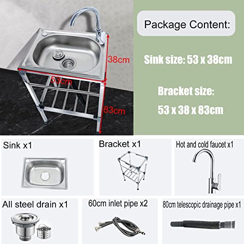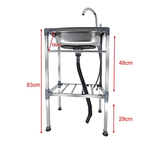 Lavello Cucina Lavello in Acciaio Inossidabile Commerciale Piscina Singola, Mano Lavello Portatile, Per Lavare Le Mani Lavanderia Lavanderia Lavello Workstation (A-53x38x83cm)