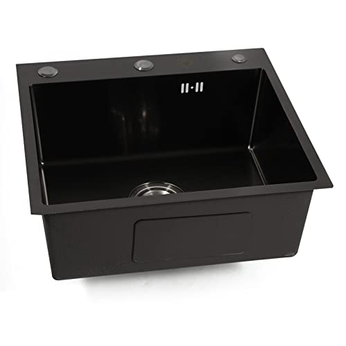 Lavello da cucina in acciaio inox, rettangolare, con foro per rubinetto, 50 x 45 cm, con dispenser per sapone, sifone