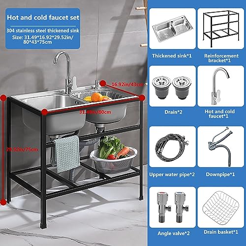 Lavello da Cucina da Giardino Esterno, lavello da Campeggio Multifunzionale per Esterni, lavello Multifunzionale a Doppio lavabo con ripiano Nero, Stabile e Solido, Adatto per Garage, Ristorante (Siz