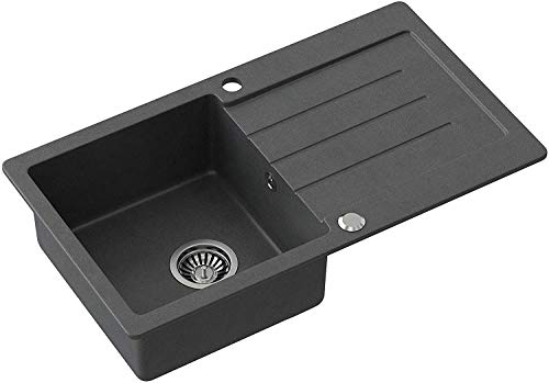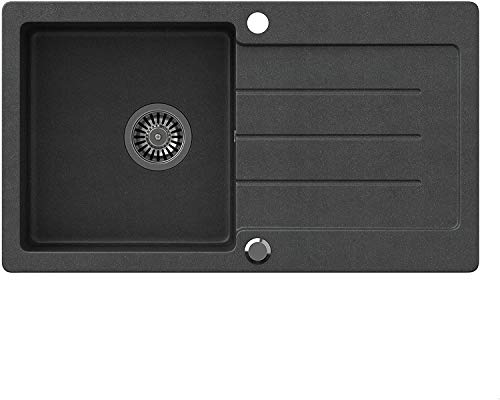Lavello da cucina in granito, da incasso, 44 x 77 cm, con scolapiatti e sgocciolatoio, colore: nero