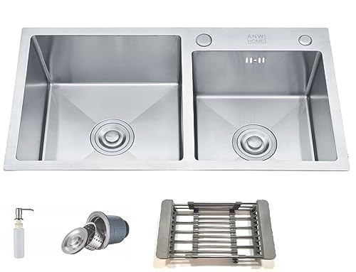 Lavello da cucina 7843 Lavello da incasso a doppio scomparto Lavello da cucina in acciaio inossidabile Lavello da cucina Lavello in acciaio inossidabile argento Lavello da tavolo Lavello da incasso