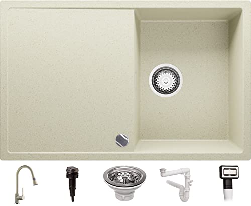 Lavello Cucina 78 x 50 cm, Lavandino Cucina Composito 1 vasca + Rubinetto + Sifone Automatico, Lavabo Cucina Incasso Ibiza di Primagran, Beige