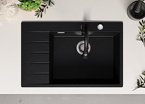 Lavello Cucina 78 x 50 cm, Lavandino Cucina Composito 1 vasca + Rubinetto + Sifone Automatico, Lavabo Cucina Incasso Sydney 780 Cargo XXL di Primagran, Grafite