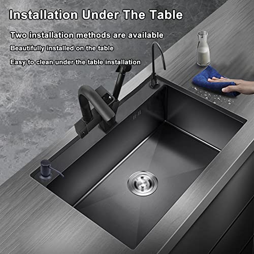Lavello da Cucina con Rubinetto Sottopiano Vasca Singola Grande Spessore in Acciaio Inox 304 Lavello di Grande capacità Nero Nano di Spessore per La Casa Múltiples Accessori