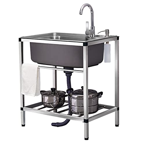 Lavello Cucina 1 Vasca,Lavelli Garage Mobile con Rubinetto e Gambe,Lavandino a Libera Installazione in 304 Acciaio Inox,Lavandino da Esterno,Lavatoio Commerciale Ristorante Lavanderia