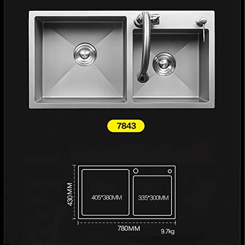 Lavello Durevole 78x43cm Undermount/Topmount Double Bowl 3mm Spessore a Mano in lavandino a Mano Regali Domestici (Colore: Silver, Size: 78x43x22cm)