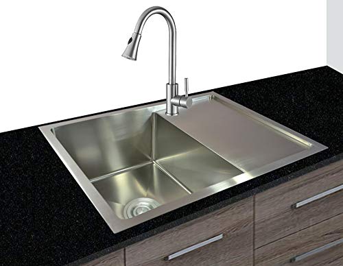 1 lavello da incasso in acciaio inox 304, rettangolare, 1 vasca di scarico realizzato a mano, 54 cm, lunghezza 44 cm