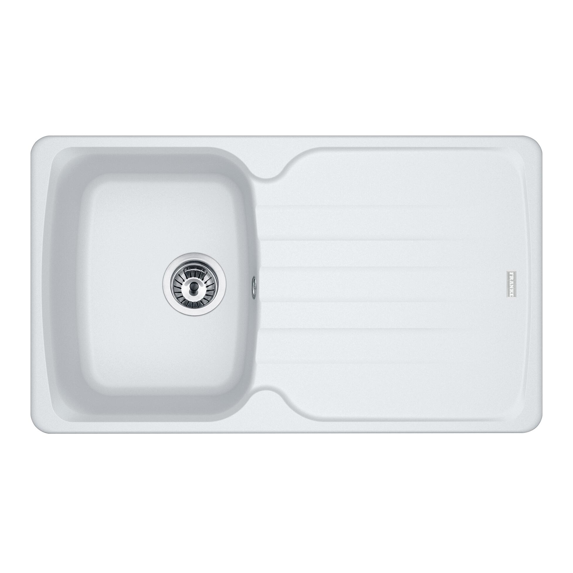 Lavello in fragranite,resistente a graffi, urti, macchie e calore. Superficie antibatterica, reversibile, con troppopieno rotondo, colore bianco