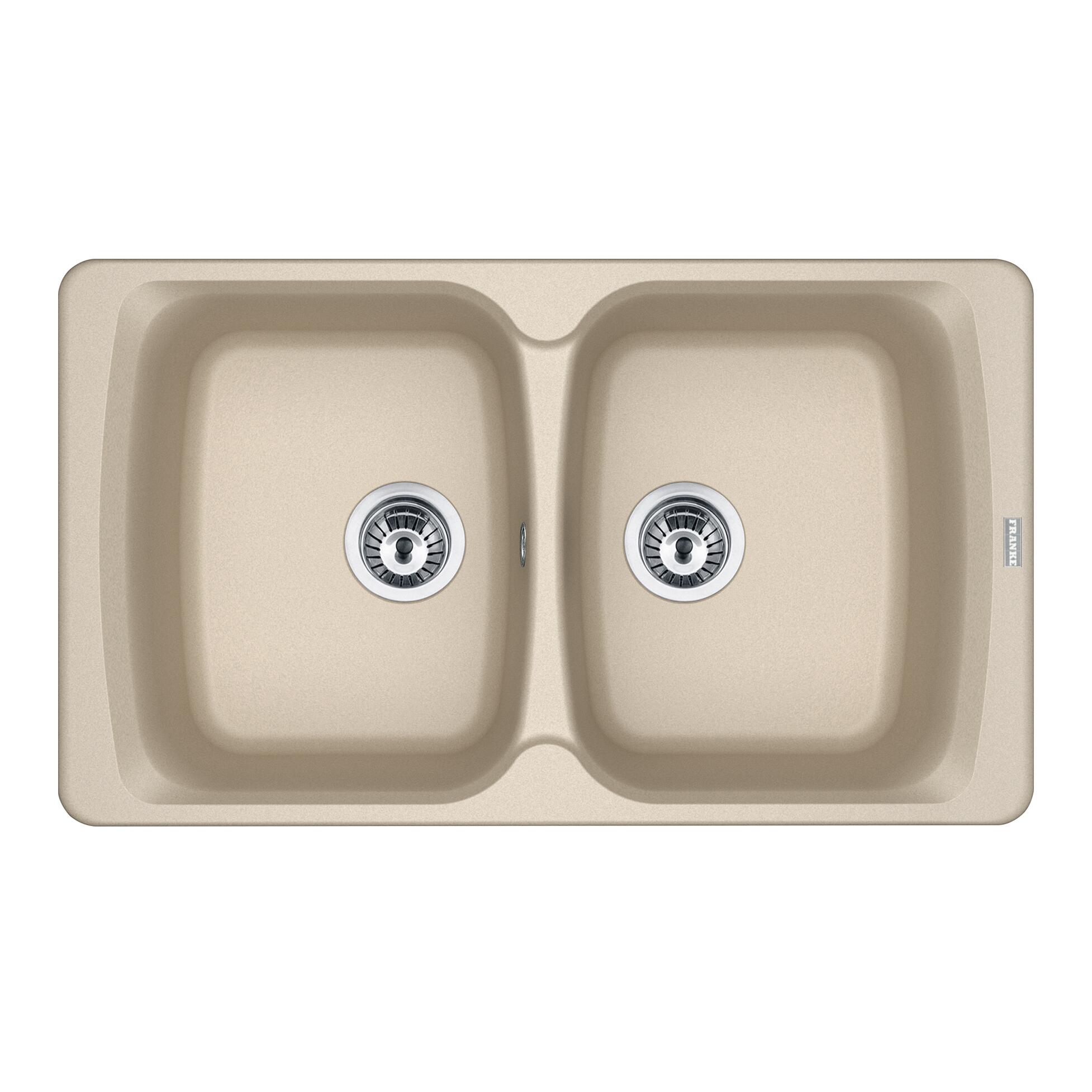 Lavello in fragranite,resistente a graffi, urti, macchie e calore. Superficie antibatterica, reversibile, con troppopieno rotondo, colore avena