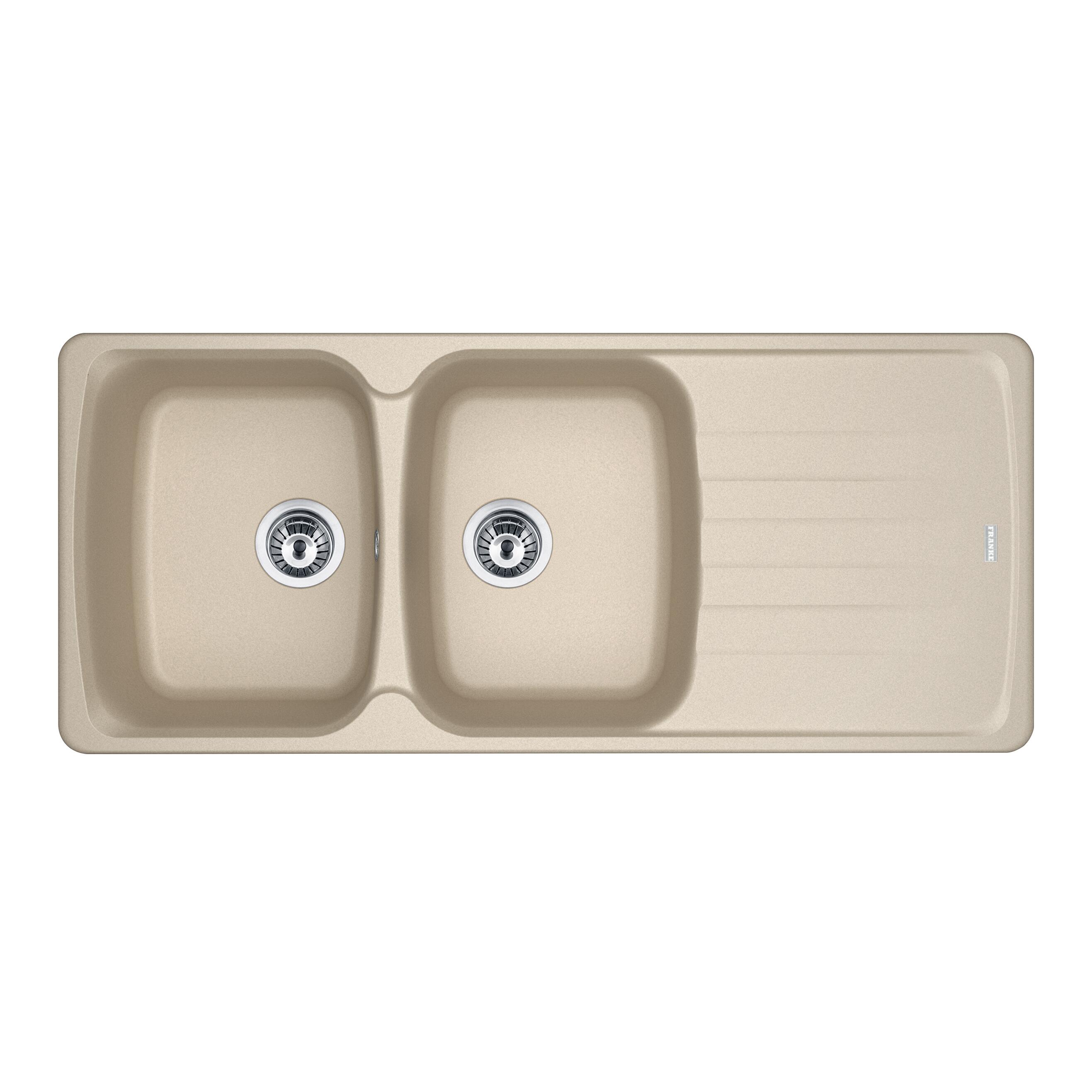Lavello in fragranite,resistente a graffi, urti, macchie e calore. Superficie antibatterica, reversibile, con troppopieno rotondo, colore savena