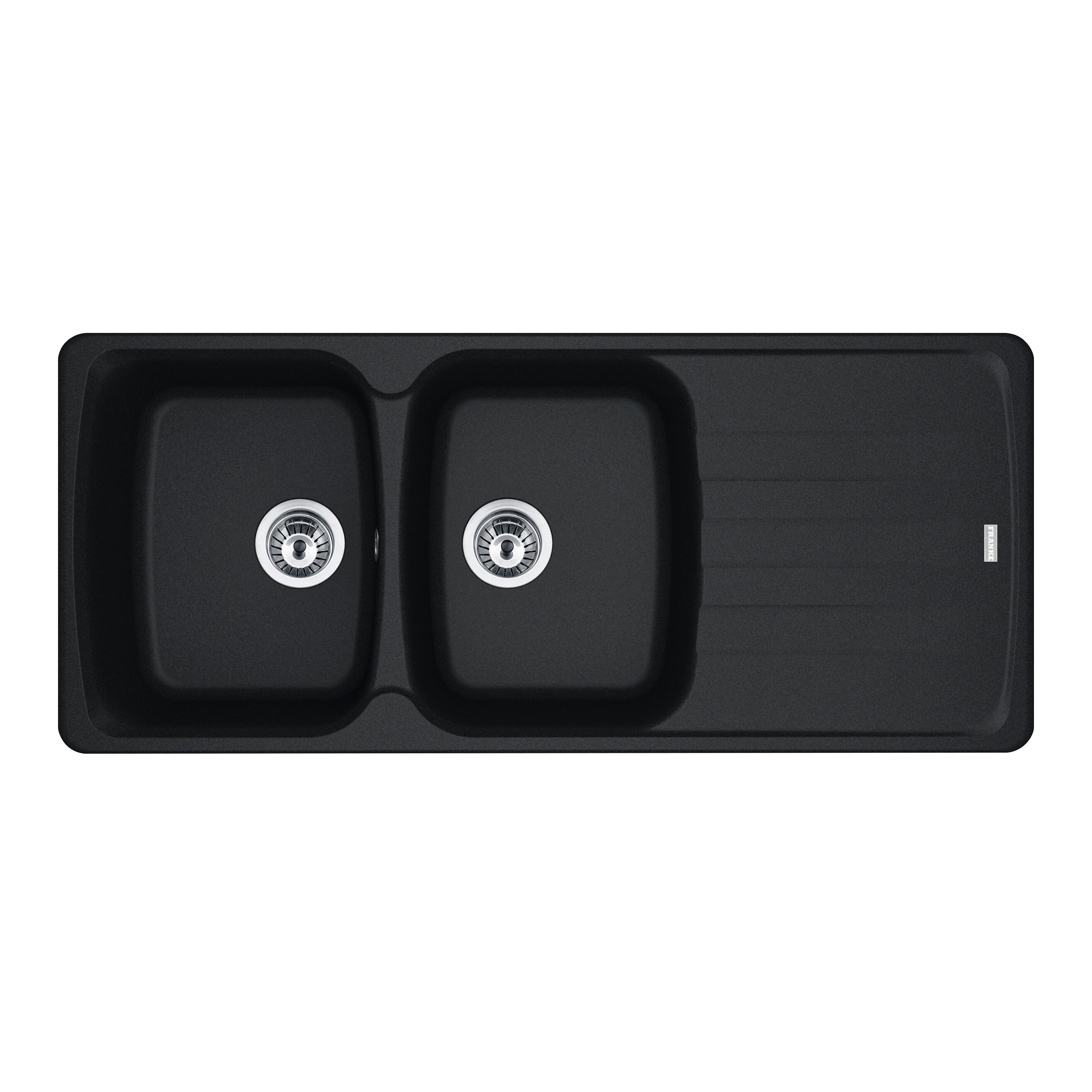 Lavello in fragranite,resistente a graffi, urti, macchie e calore. Superficie antibatterica, reversibile, con troppopieno rotondo, colore nero
