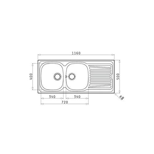 Lavello pyramis modello 100150730 sparta 116x50 2 vasche a destra dx con piletta da 3,5