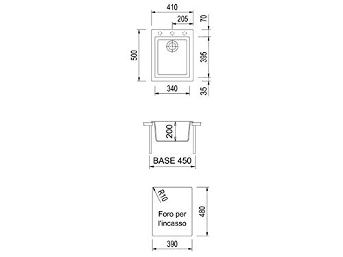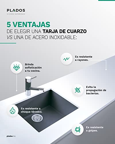Lavello in quarzo da cucina incasso PLADOS ON4110 vasca singola 41cm - Nero metal