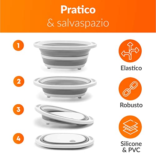 Lavello e Tagliere Pieghevole Salvaspazio in Silicone | Lavandino da Campeggio Multifunzione 3 in 1 con Valvola di Scarico | Accessori Camper Utili Cucina