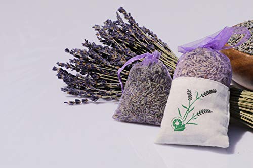 12 Pure Lavender Dry Flower 10g Satchels - Cozy Pouch Sachets Filled with Dried Lavender Buds - Natural Scent Fragrance for Aromatherapy - Car - Closet - Drawers - Moths - Wardrobe