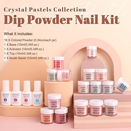 Lavender Violets Dip Polish M964 - Set di 20 pezzi per Dipping Powder System Trendy Gelatine Semi Trasparente Manicure Nail Art Palette con Base & Top Coat, Attivatore Brush Crystal Pastel French Nail