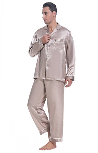 Lavenderi Set pigiama da uomo in raso di seta a maniche lunghe, pigiama setoso, Copy Tap, Medium